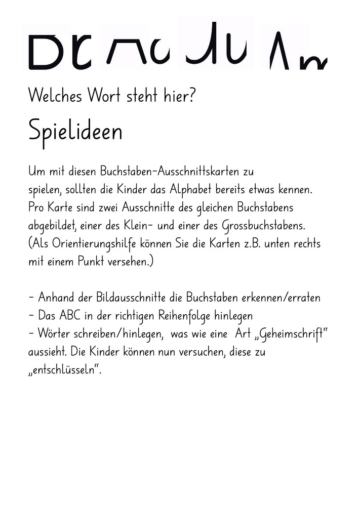 32 Karten mit Buchstabenausschnitten (pro Karte der Klein- und Grossbuchstabe) Format A5