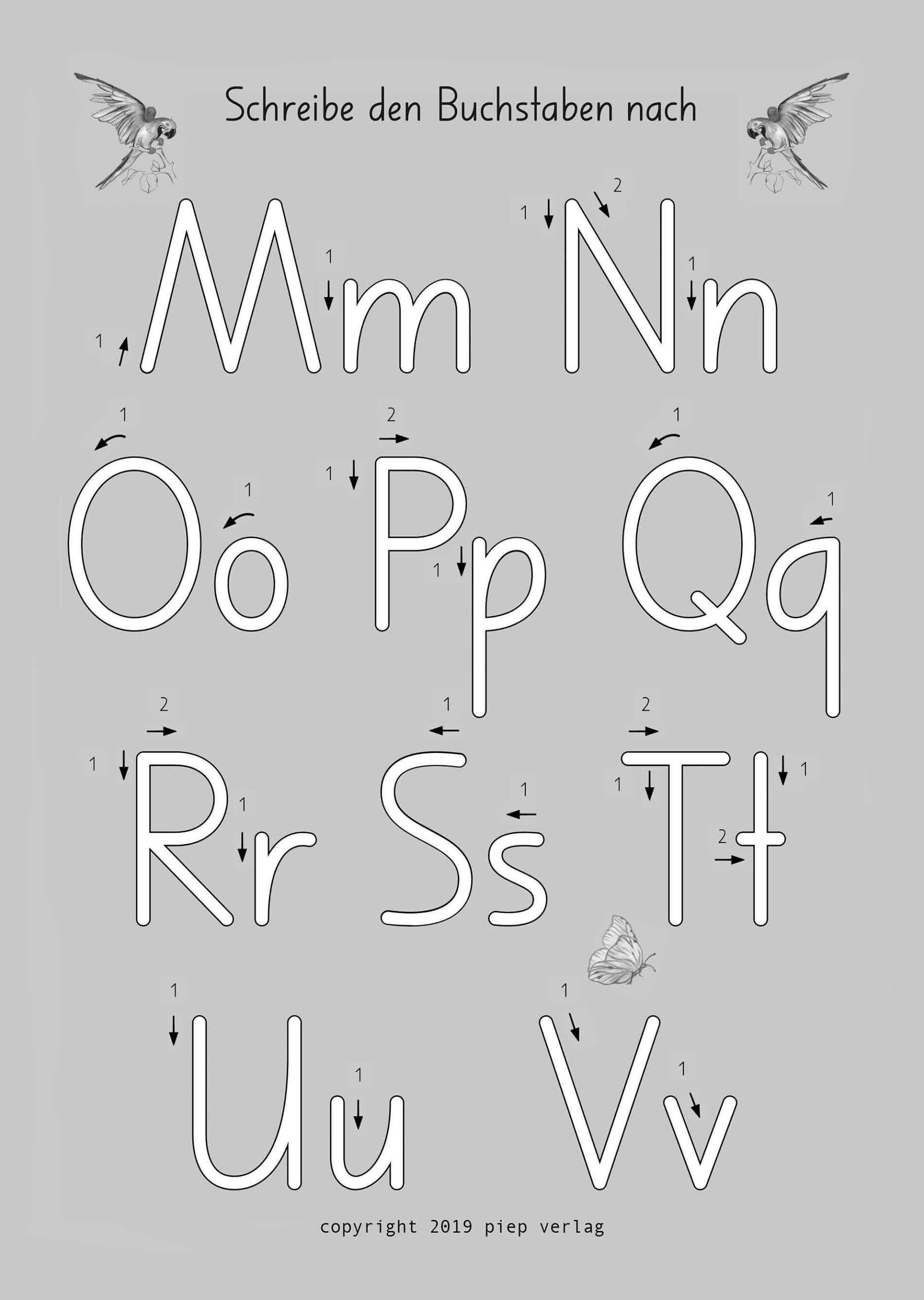 5 Arbeitsblätter zum mehrmaligen Nachschreiben der Buchstaben und Zahlen Neu: In einer hübschen Mappe, in welcher es noch Platz für weitere Blätter gibt . . . Format: A4